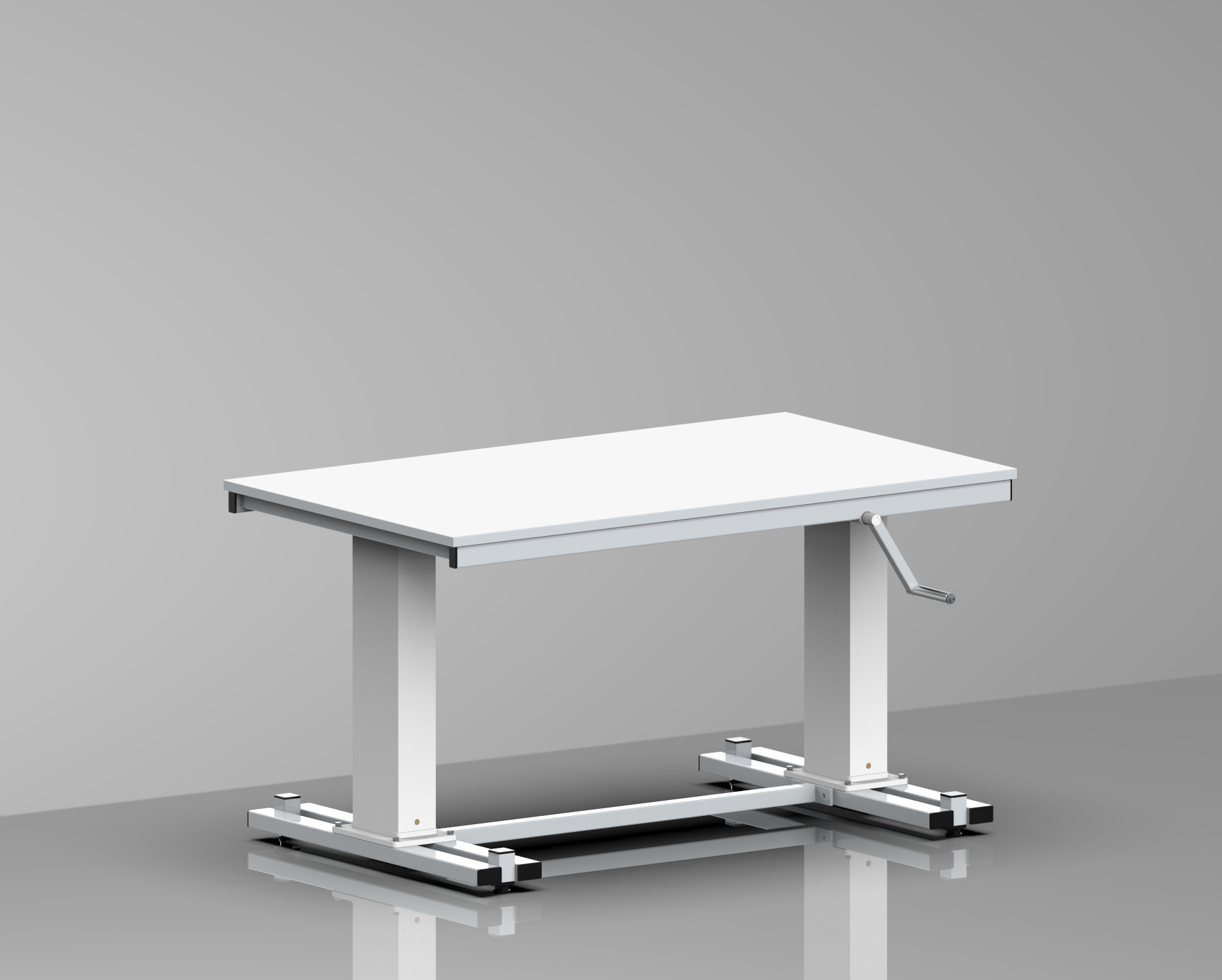 W przypadku gdy stoły robocze wymagają częstszej regulacji (np. przy pracy zmianowej w zakładzie, gdy z tego samego stanowiska korzystają na zmianę dwie różne osoby), dobrze sprawdzą się stoły z regulacją wysokości za pomocą ręcznej korby. Tego typu mechanizm nie wymaga klucza i jest znacznie prostszy w obsłudze niż regulacja na śrubach, ale wymaga czasu do zmiany wysokości blatu. W standardowych rozwiązaniach JABAMA jeden obrót korbą to 3,6mm, a samą korbę po skończonej regulacji można schować w uchwycie pod blatem. Regulacja na korbę będzie dobrym rozwiązaniem szczególnie w przypadku, gdy regulacja elektryczna nie może być zastosowana, na przykład w strefach EX, czyli zagrożonych wybuchem.