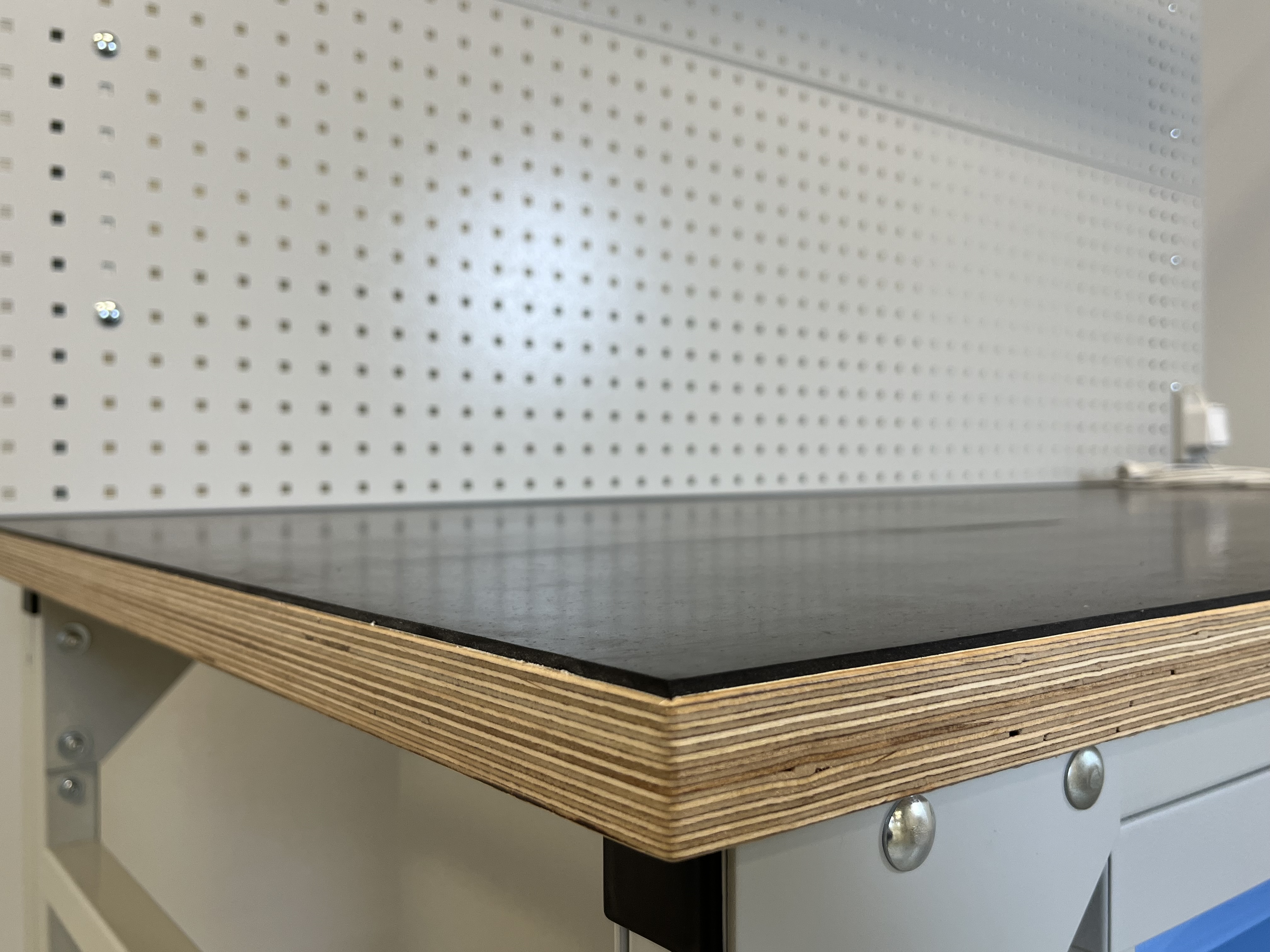Podstawowe rozwiązanie dla większości stołów roboczych, które dobrze sprawdza się przy szerokiej gamie prac montażowych, produkcyjnych oraz mniej intensywnych procesach pakowania i wysyłki paczek. W zależności od wymiarów, zazwyczaj wykonywany jest z płyty grubości 18 mm, 25 mm lub 30 mm. Krawędzie płyty laminowanej po cięciu oklejane są ABS, optymalnie grubości 2 mm. Blaty robocze z tego materiału to uniwersalne i efektywne kosztowo rozwiązanie. Są stosunkowo odporne na pęknięcia i zarysowania, a przy tym łatwo utrzymać je w czystości.