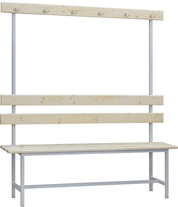 Ławka do szatni z wieszakiem i oparciem 1650x1000/1500/2000x375 mm, jednostronna z trzema wariantami długości