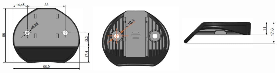 - Wymiary (długość x szerokość x wysokość): 54,8 mm x 66,7 mm x 17 mm (bez płyty montażowej)