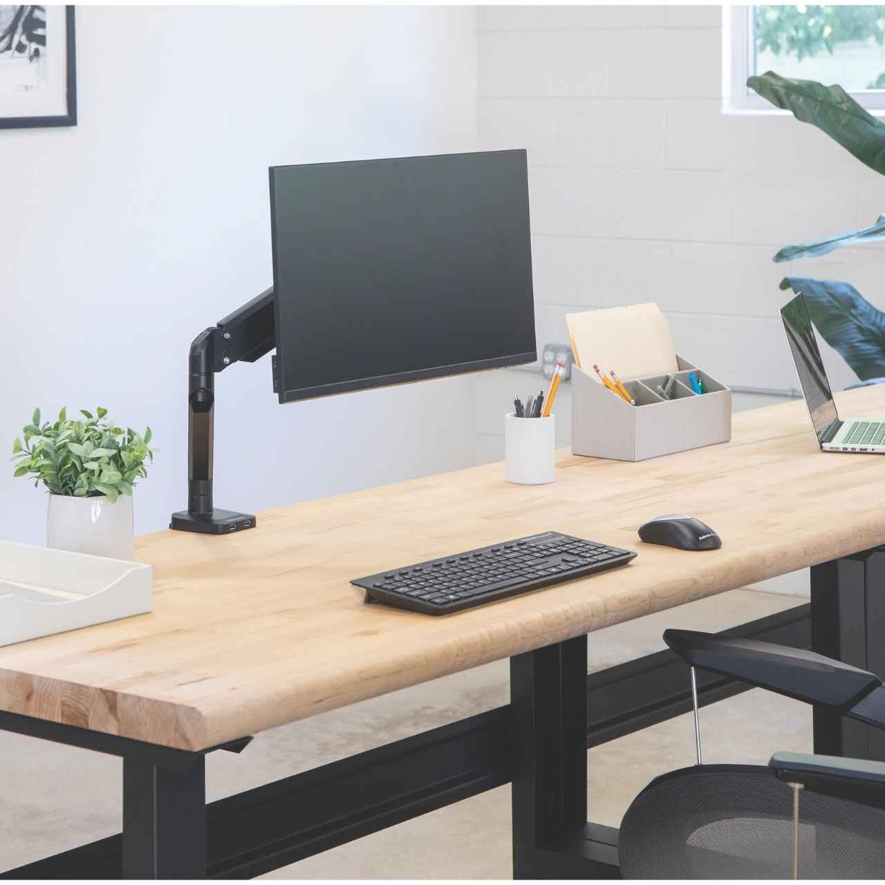 Wydajne i ergonomiczne, ramię Platinum pozwala na znaczącą poprawę komfortu długotrwałej pracy siedzącej. Dzięki zastosowaniu sprężyny gazowej ekranem można łatwo manipulować, zarówno w celu dostosowania do swoich potrzeb jak i współdzielenia go. Dodatkową funkcjonalność zapewniają złącza USB oraz prosty system zarządzania okablowaniem.