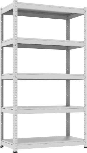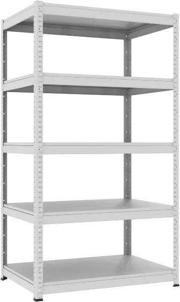 Pięciopółkowy warianty regału półkowego RMM od polskiej firmy Malow. Dla półek dostępne są dwie opcje szerokości i głębokości. Uniwersalne i solidne, wyróżnia je wysoka trwałość i jakość wykonania. Użycie blachy z cyrkonowanej i malowanej proszkowo stali zapewnia im wyjątkową wytrzymałość i odporność na zużycie. Cechuje je łatwy i szybki montaż "na wcisk", nośność na półkę od 100 kg do 200 kg w przypadku przykręcenia do ściany lub dwóch regałów plecami. Regały magazynowe z 5 półkami dostępne są w wielu różnych wariantach wymiarowych, dzięki czemu każdy znajdzie dla siebie pasujący wymiar regału.