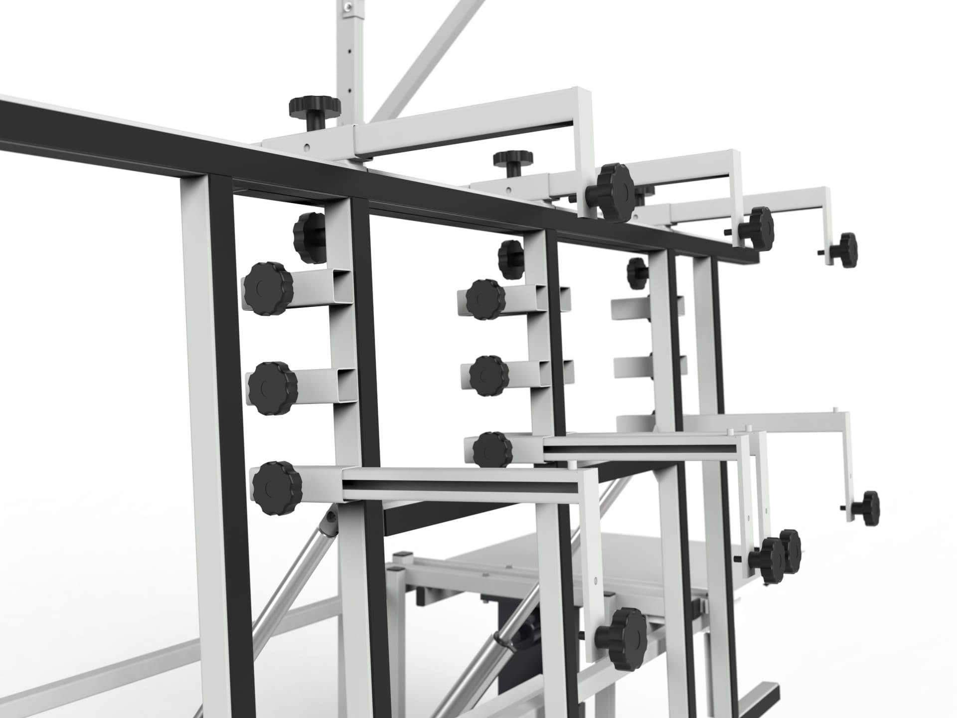 - Zakres wielkości montowanych płyt to: szerokość od 500 do 1800mm, wysokość od 500 do 900mm, a w przypadku płyty o szerokości od 500 do maksymalnej szerokości 1050mm wysokość od 500 do 1300mm