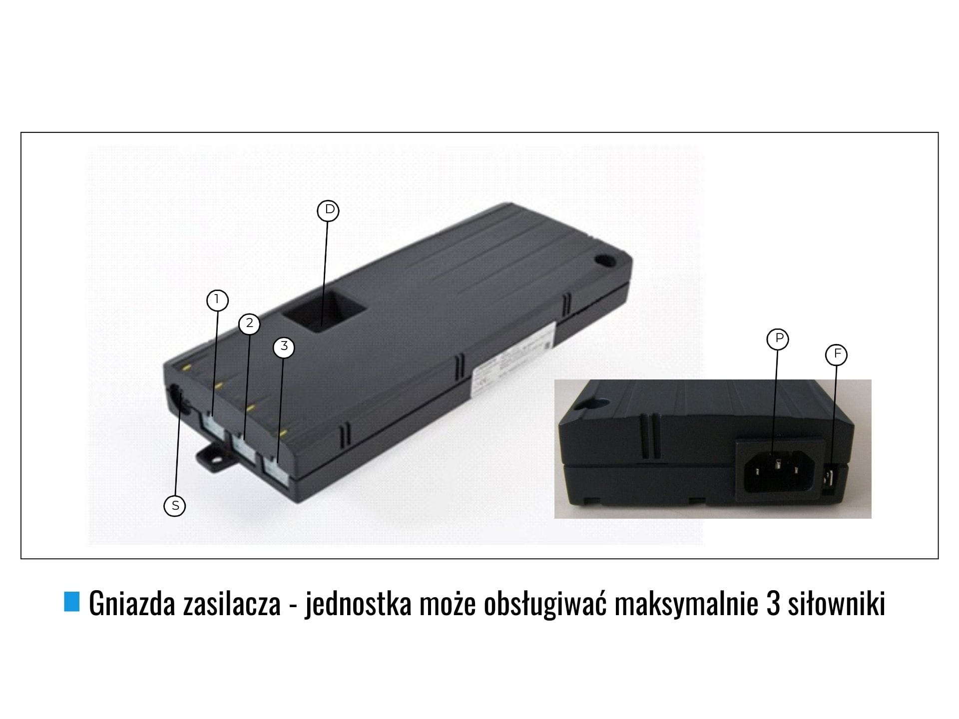 Jednostka sterująca COMPACT może obsługiwać od jednego do trzech siłowników i posiada następujące gniazda: