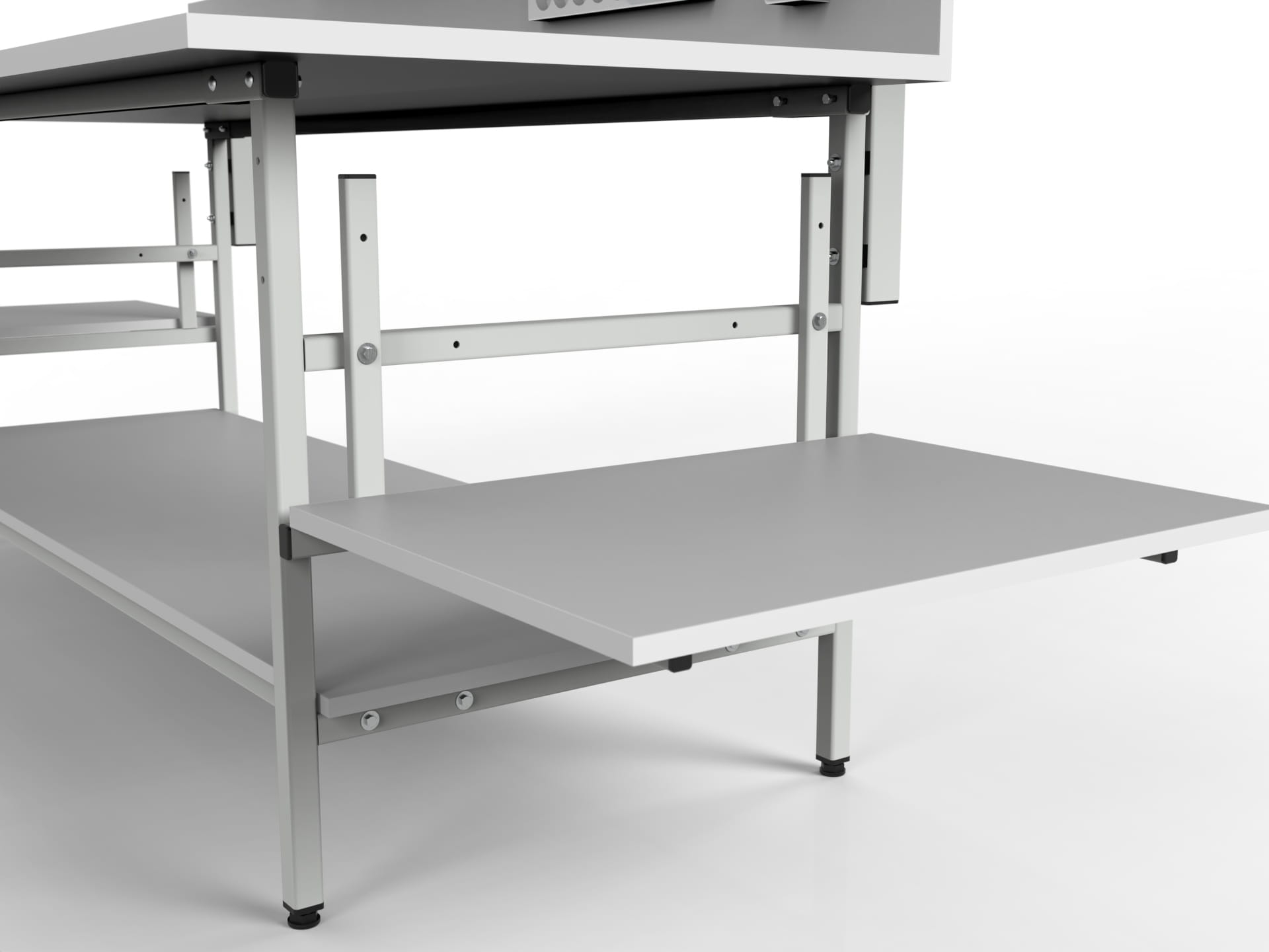 - szuflady na klawiaturę, półki na PC, półki na drukarkę zwykłą i drukarkę do etykiet