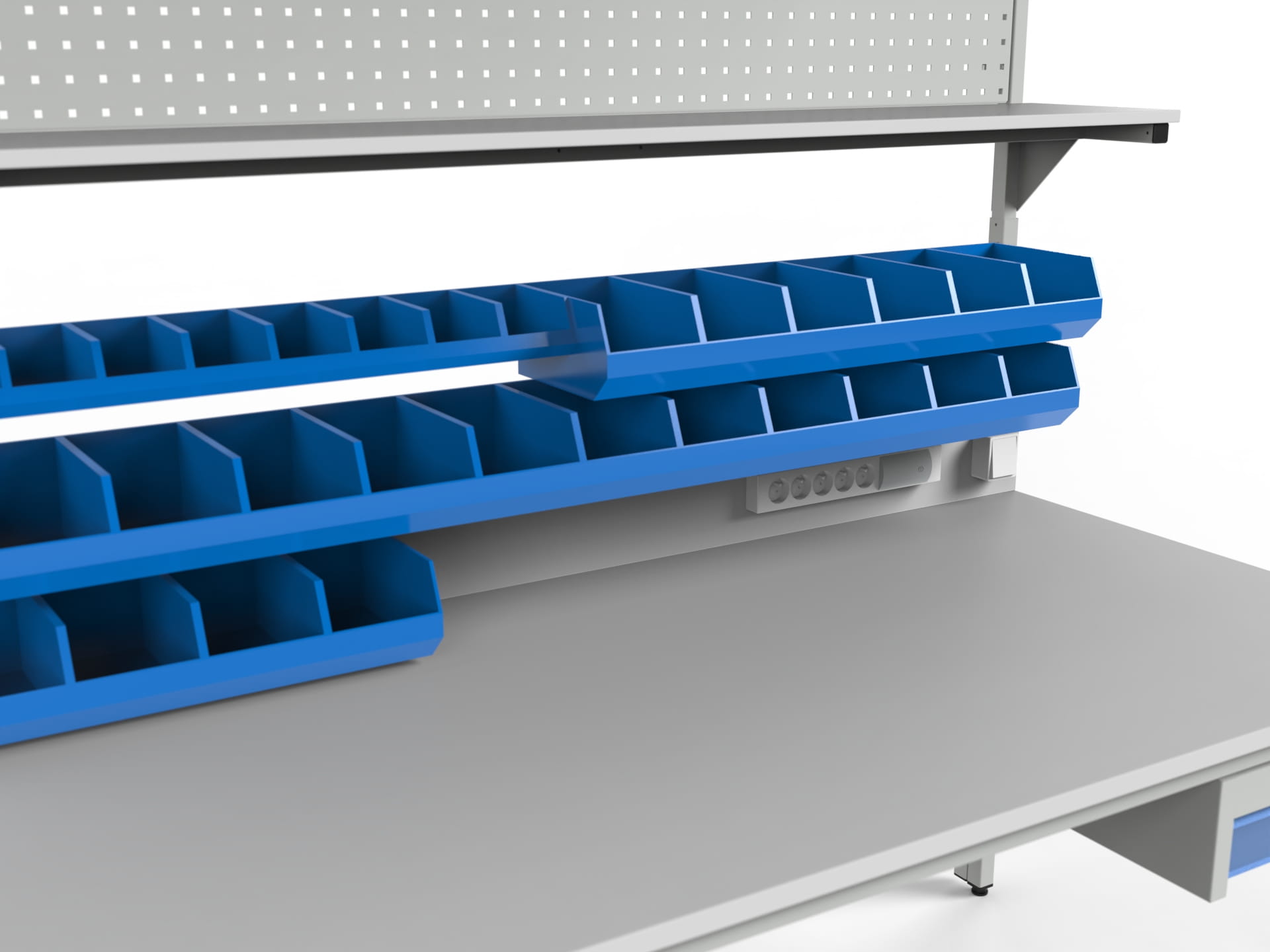 Stoły montażowe SM Jabama projektowane są z myślą o modułowości i wymienności podzespołów. Sprawia to, że w większości modeli można wykorzystać całą gamę dodatków, takich jak:
