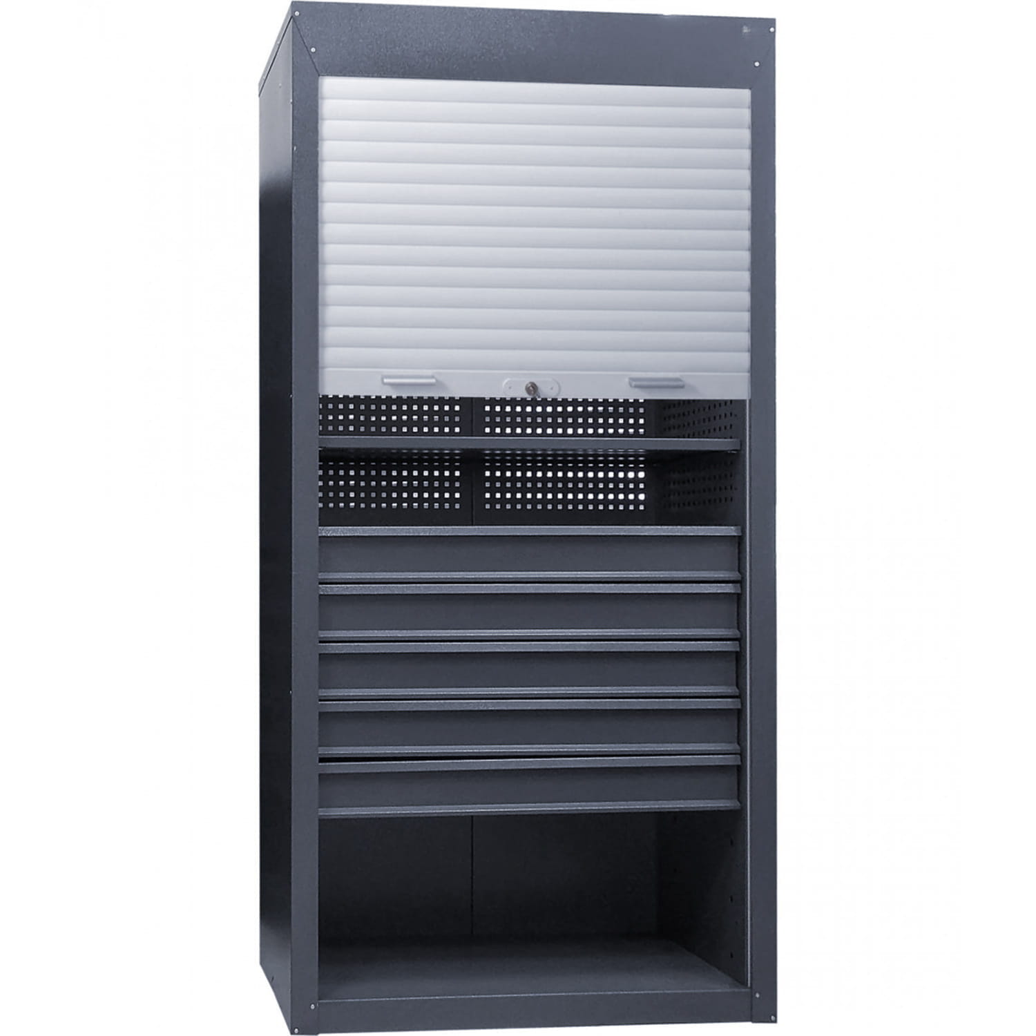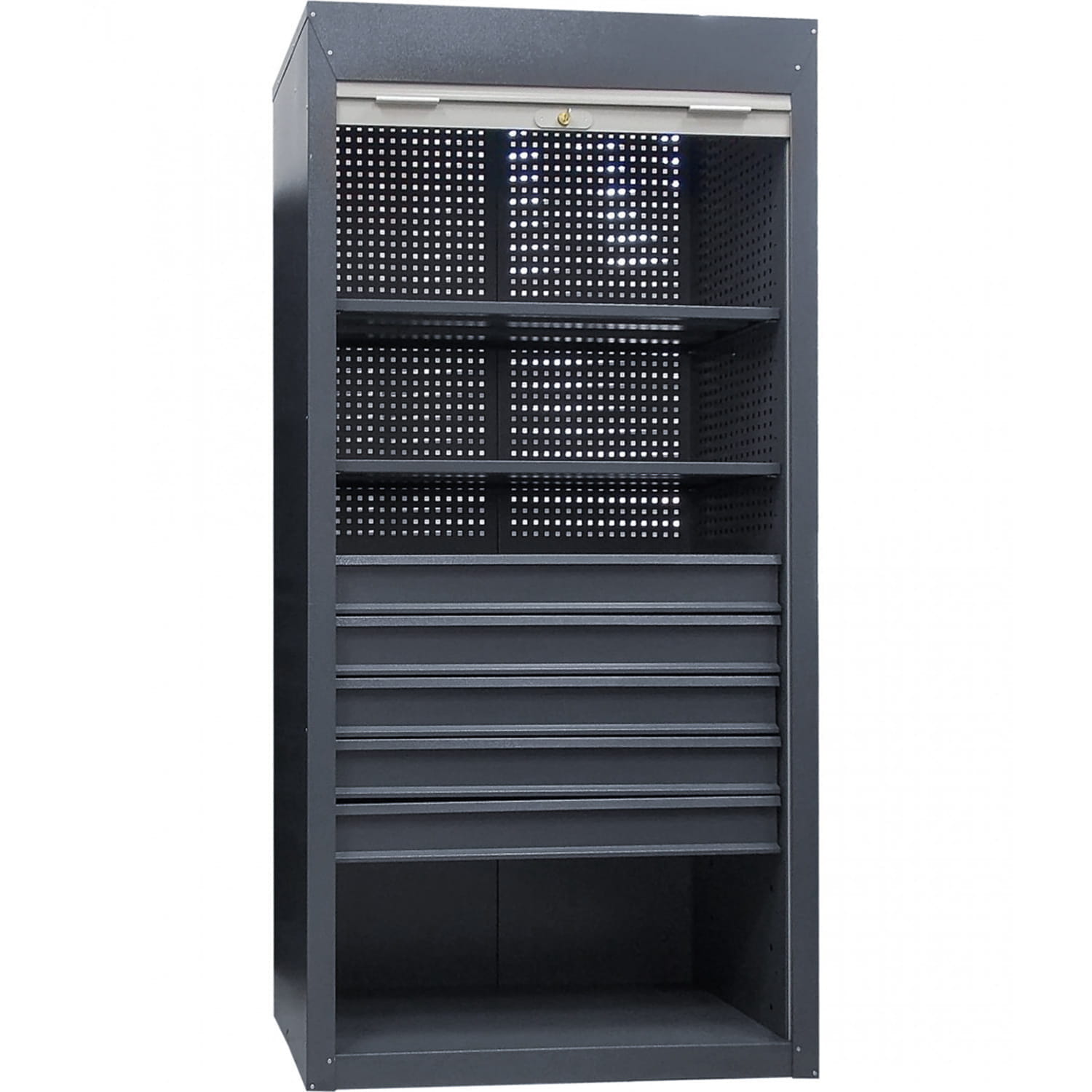 - perforowany tył szafy warsztatowej zmniejsza wagę i poprawia cyrkulację powietrza wewnątrz