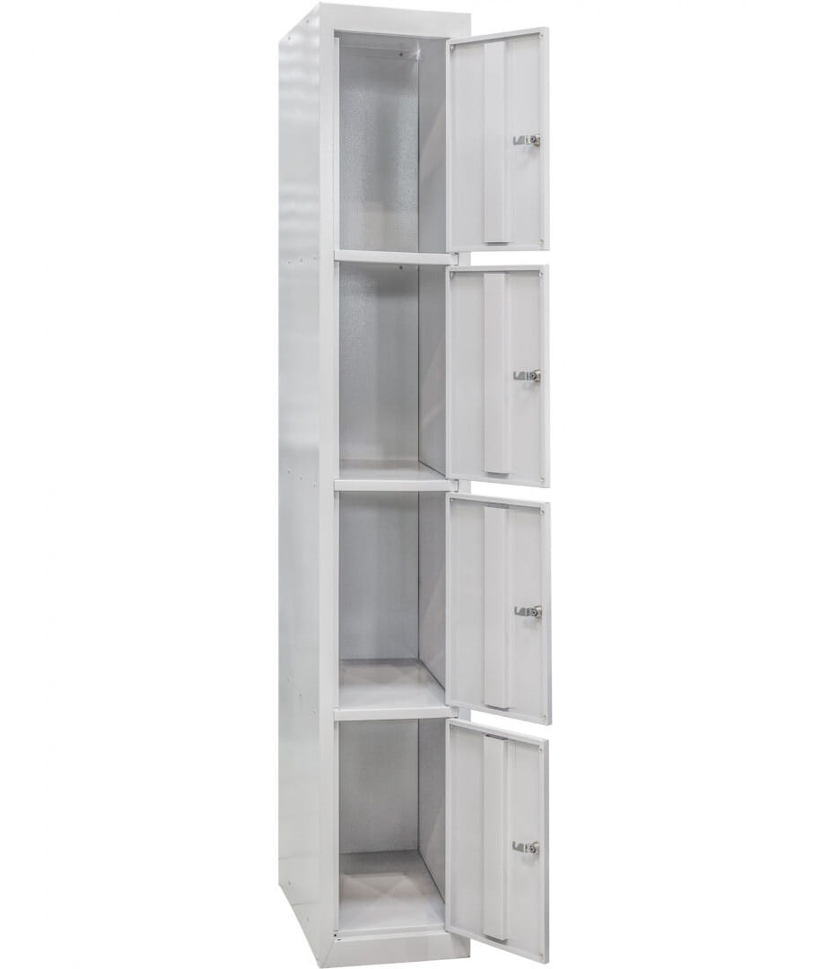 Szafka skrytkowa SKR-300-1-4 to wypróbowane, ergonomiczne wyposażenie szatni czy przechowalni na basenach, w sklepach czy w poczekalniach i innych miejscach publicznych. Stal zabezpieczona powłoką fosforanową i farbą proszkową wykazuje doskonałe właściwości przeciwdziałania korozji i ścieraniu, dzięki czemu można ją umieszczać w pobliżu basenów, pryszniców czy innych wysoce wilgotnych miejsc. Robiąc zakupy w naszym sklepie online zyskujesz również przystępną cenę, asystę zespołu specjalistów oraz dostęp do szerokiej oferty mebli przemysłowych takich jak stoły montażowe i regały półkowe, oraz dostęp do atrakcyjnych rabatów ilościowych.