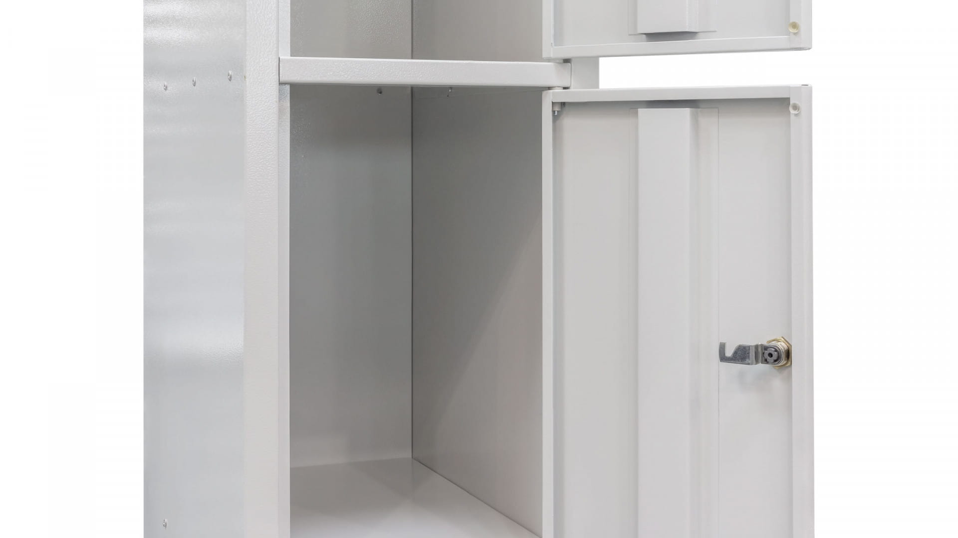 - wytrzymała konstrukcja z fosforanowanej stali malowanej proszkowo w kolorze RAL7035 chroni szafkę przed ścieraniem i wilgocią