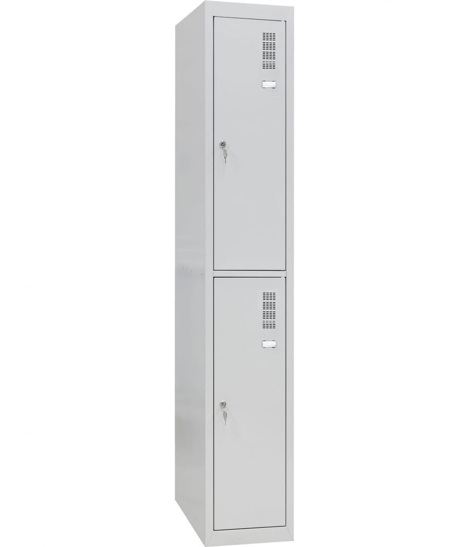 Szafka ubraniowa SU300-1-2 to sprawdzone, ergonomiczne wyposażenie szatni i przebieralni zarówno w zakładach pracy jak i na siłowniach czy w innych miejscach publicznych. Stal została zabezpieczona powłoką fosforanową i farbą proszkową przez co charakteryzuje się doskonałymi właściwościami antykorozyjnymi i zapobiega ścieraniu mechanicznemu, dzięki czemu szafkę można umieszczać w pobliżu basenów, pryszniców czy innych miejsc o wysokim poziomie wilgoci w powietrzu. Węższa od egzemplarzy z serii 400, SU300-1-2 to idealne rozwiązanie w sytuacjach kiedy problemem jest ograniczone miejsce. Robiąc zakupy w naszym sklepie internetowym możesz również liczyć na asystę zespołu specjalistów, rozsądną cenę oraz dostęp do szerokiej oferty mebli przemysłowych takich jak stoły montażowe i szafy warsztatowe, oraz zyskujesz dostęp do atrakcyjnych rabatów ilościowych.
