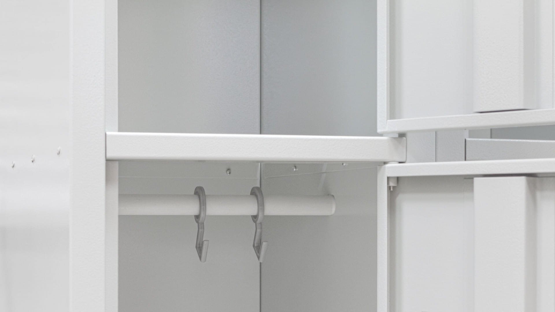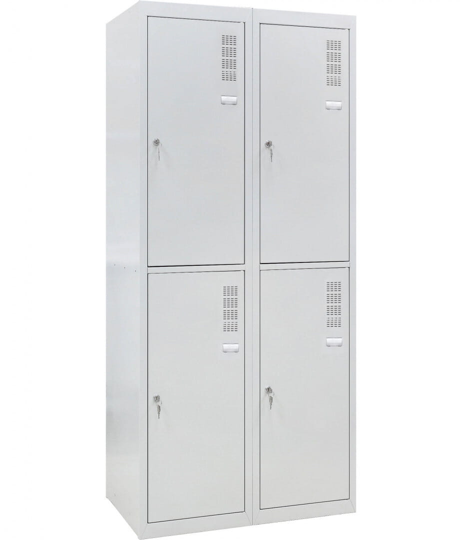 Dwukolumnowa, czteroprzedziałowa szafka ubraniowa sprawdzi idealnie gdy potrzebujesz miejsca do przechowywania ubrań i przedmiotów w stosunkowo kompaktowej formie w hali produkcyjnej, zakładzie pracy, instytucji publicznej czy w obiekcie sportowym. Obudowa szafy wykonana została z fosforanowanej blachy stalowej malowanej proszkowo, co chroni ją przed wilgocią i co za tym idzie - przed korozją. Wygodny wieszak umożliwia sprawne przechowywanie ręczników i ubrań. Stalowe drzwi zawierają usztywnienie utrudniające odkształcanie, a otwory w górnej części zapewniają wentylację i odprowadzanie zarówno zapachów jak i wilgoci.