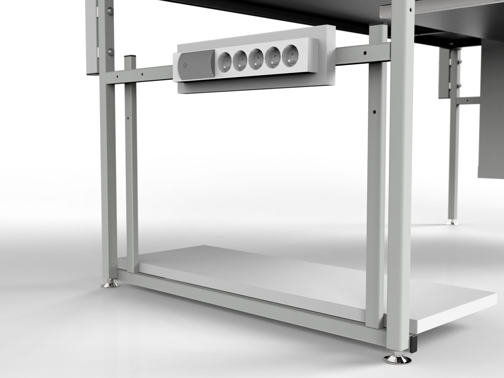 11) Stół wyposażony jest w metalowe stopki regulacyjne, odprowadzające ładunki elektrostatyczne do podłoża,