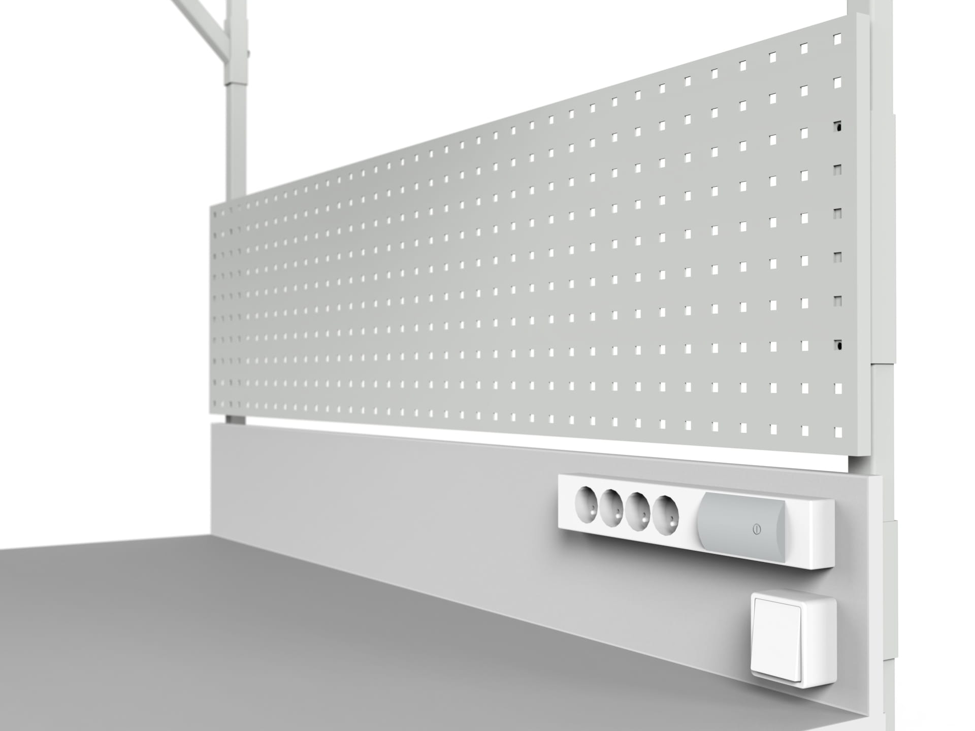 STÓŁ ROBOCZY MODEL SMRC1 Z REGULACJĄ WYSOKOŚCI, OŚWIETLENIEM, TYLNĄ ŚCIANKĄ I ŚCIANKĄ PERFOROWANĄ.