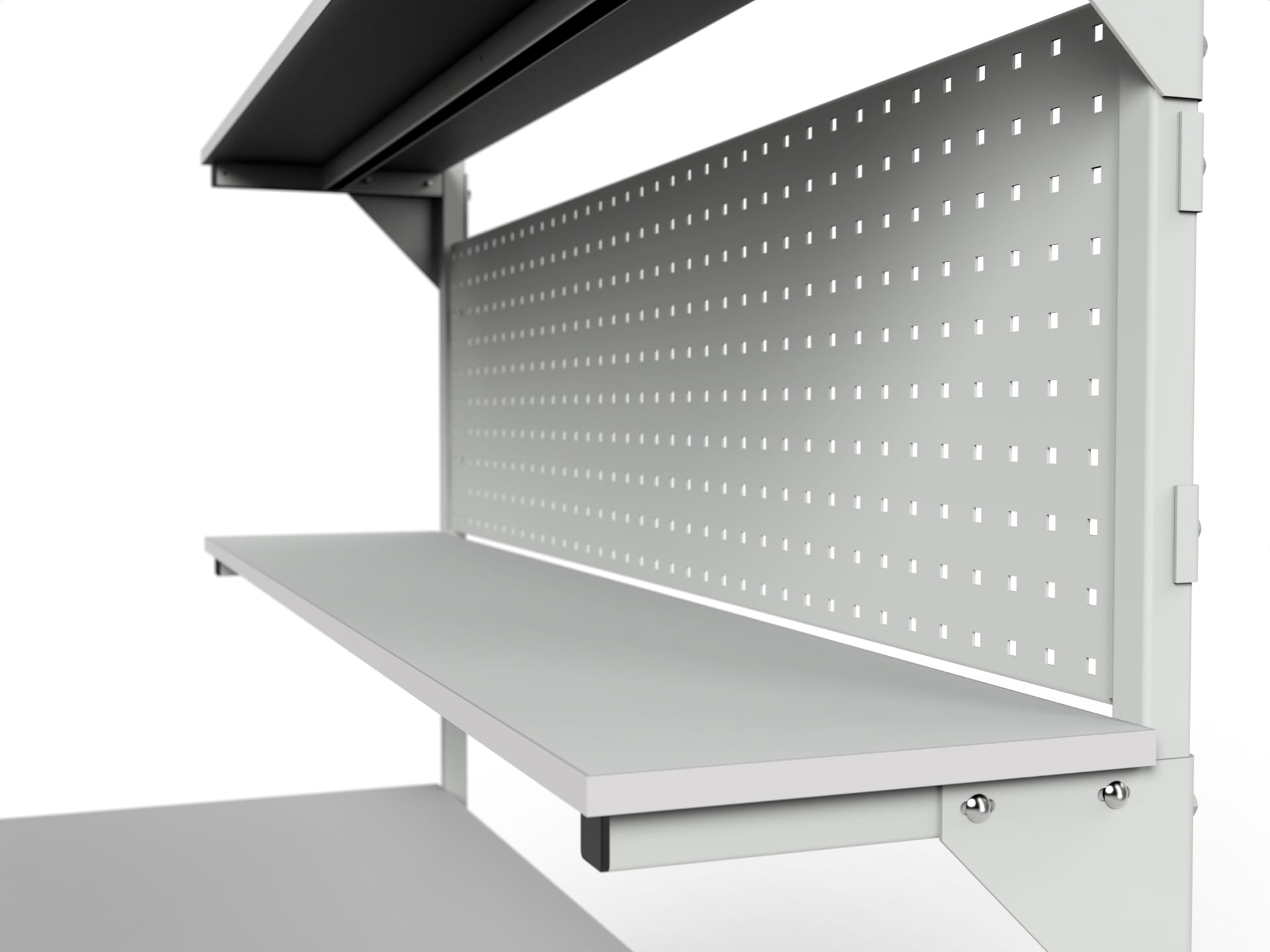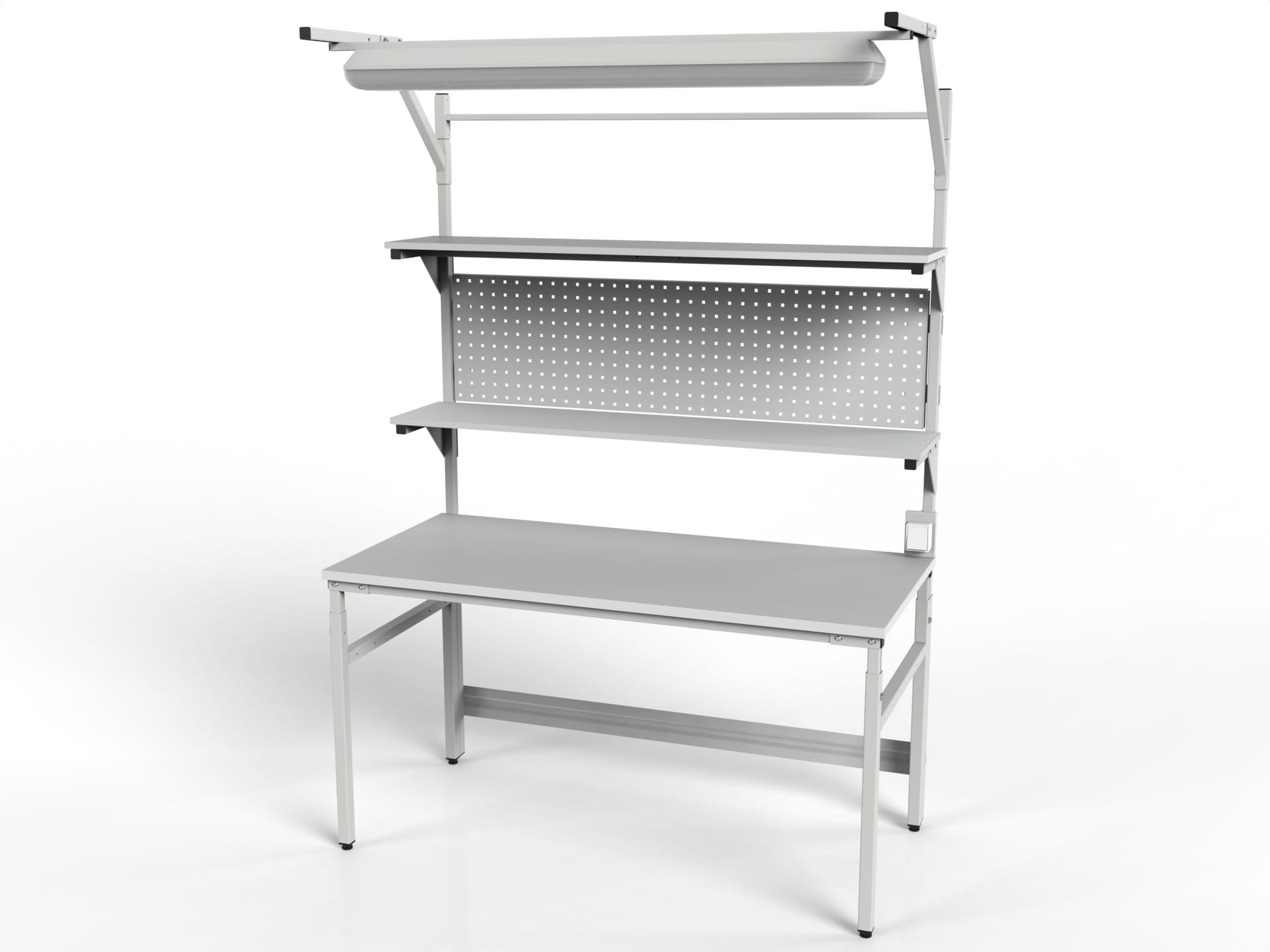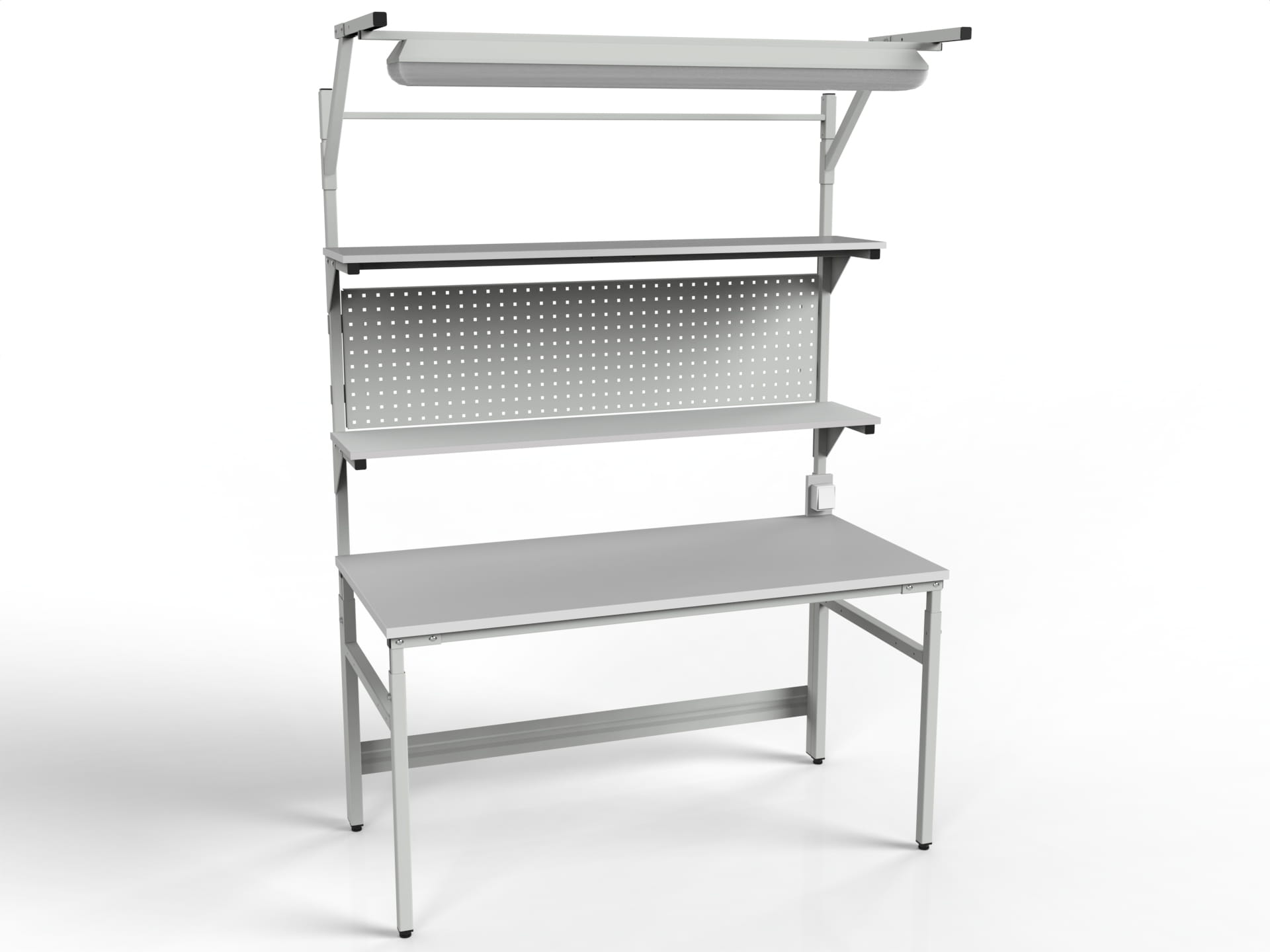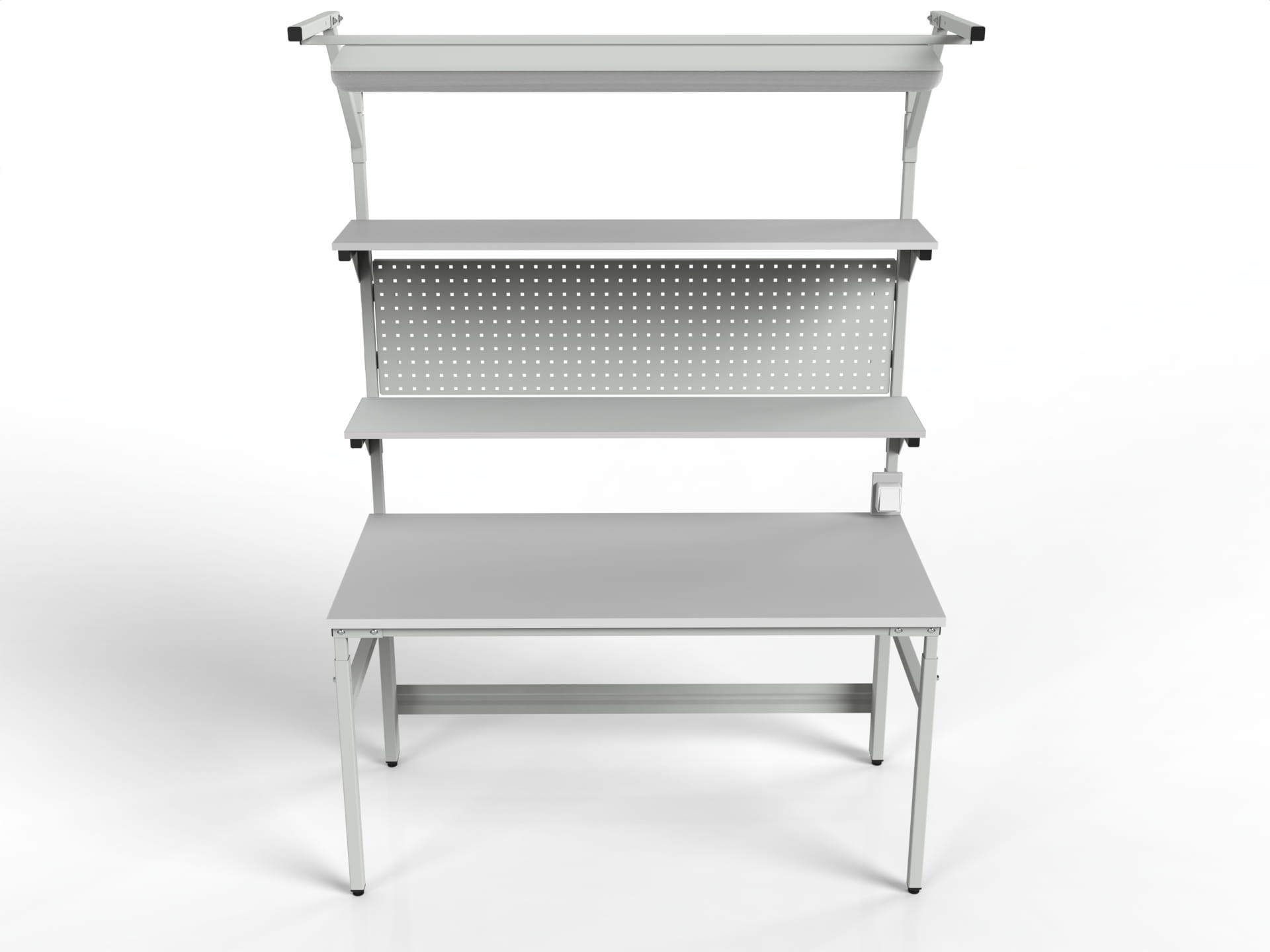 STÓŁ ROBOCZY MODEL SMR2PC Z REGULACJĄ WYSOKOŚCI, 2 PÓŁKAMI I ŚCIANKĄ PERFOROWANĄ)